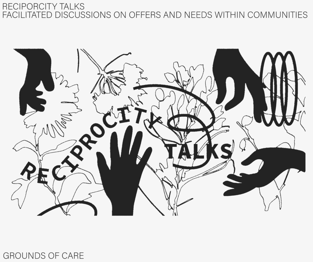 Reciprocity Talks explores how sharing needs and offers can be used to build community as well as engage in alternative local economies. Inspired on The Offer and Needs Market pioneered by the Institute of PostGrowth, we developed an approach that provides a setup for participants to exchange their needs as well as their offers. This allows participants to find the common grounds through which they could further help each other. It promotes exchange (which could range from free, to barter to financial) which do not rely on their commercialization.
