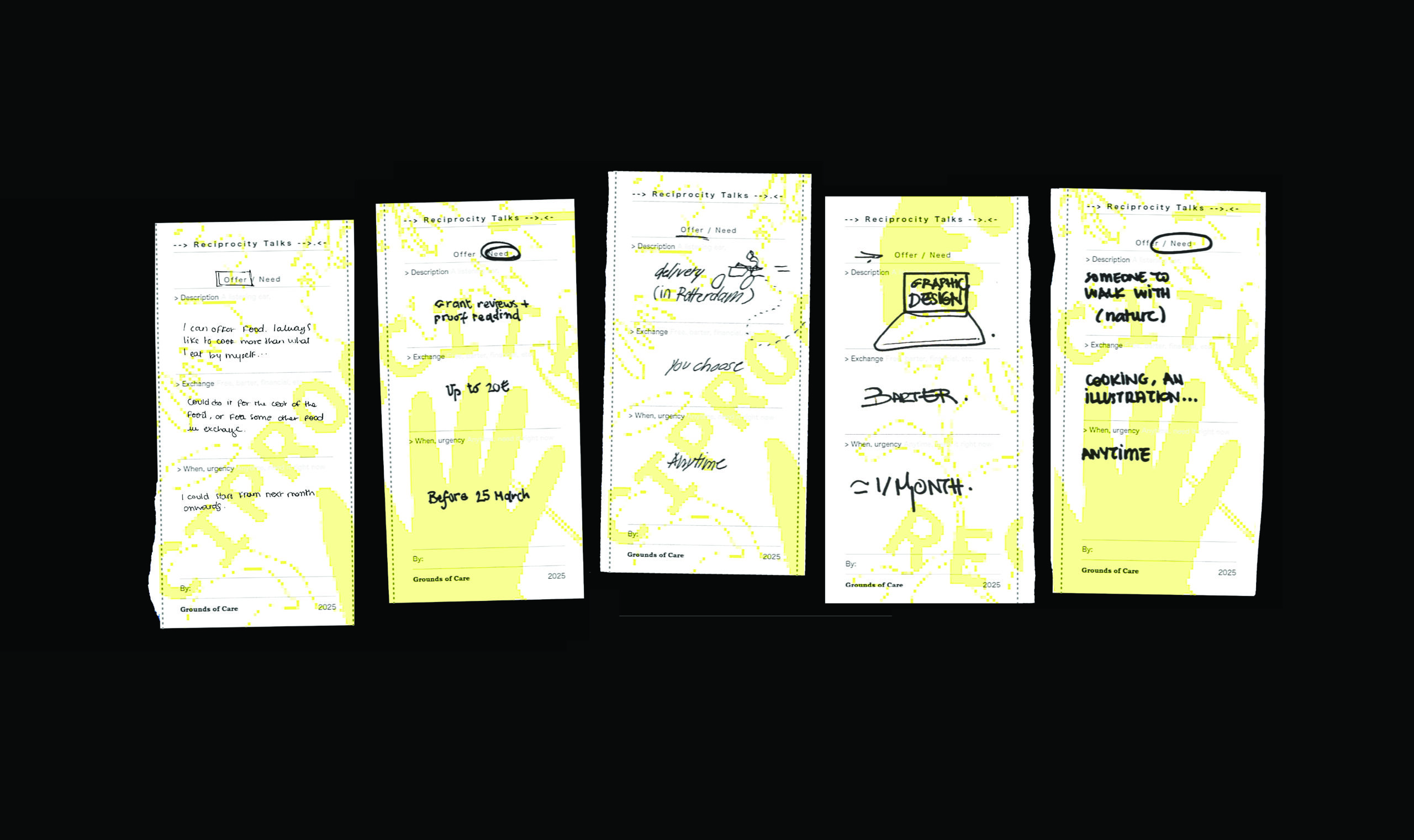 Becoming WormWorkshop exploring soil regeneration through the implementation of a hugelkultur Carbon Negative SoupMaking biochar as a tool for ecological and social regeneration Reciprocity TalksFacilitating exchanges of offers and needs within a community Setting the TableCollective storytelling about the future with Verhalenhuis Belvedere Bodies of CareUrban cooking and gardening as tools for individual and collective resilience PublicationsLow-tech solutions to urban ecosystems regenerations